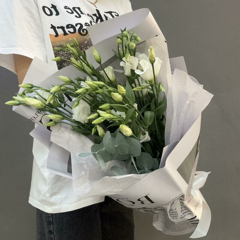 Букет из белой Эустомы и Эвкалипта для мамочки