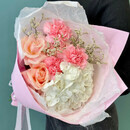 - «Клубничный маршмеллоу» Букет с гортензией, розой и диантусами