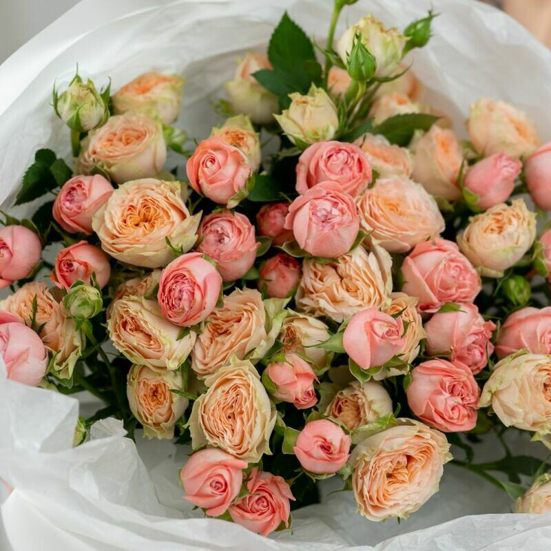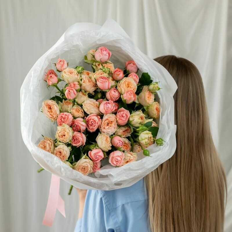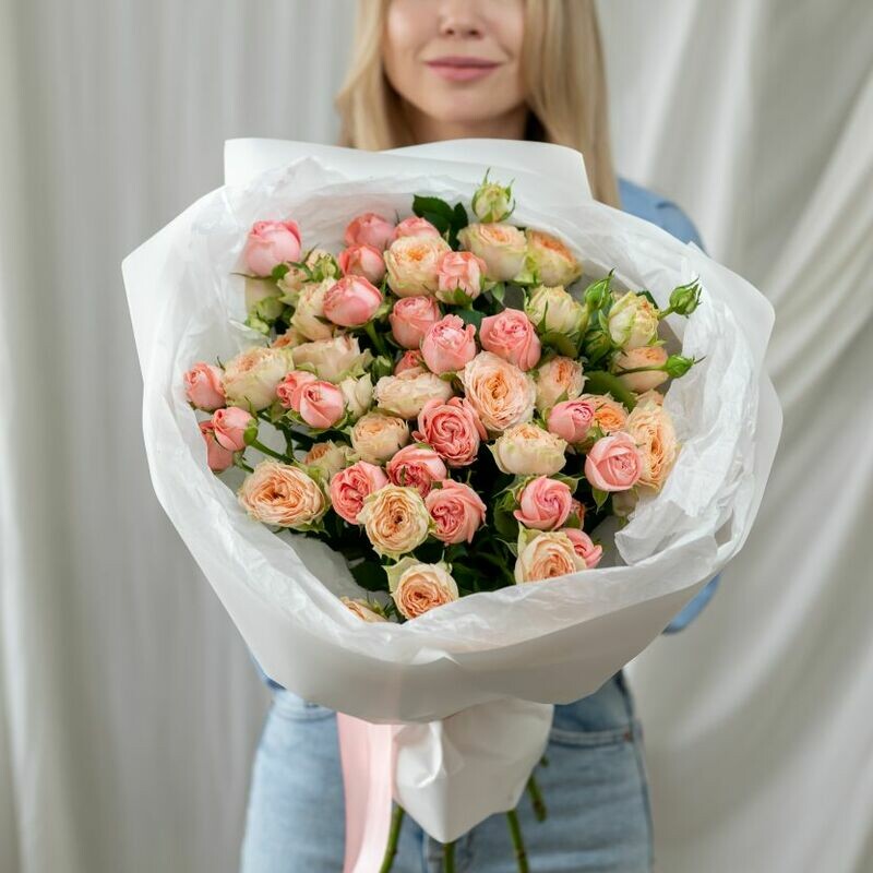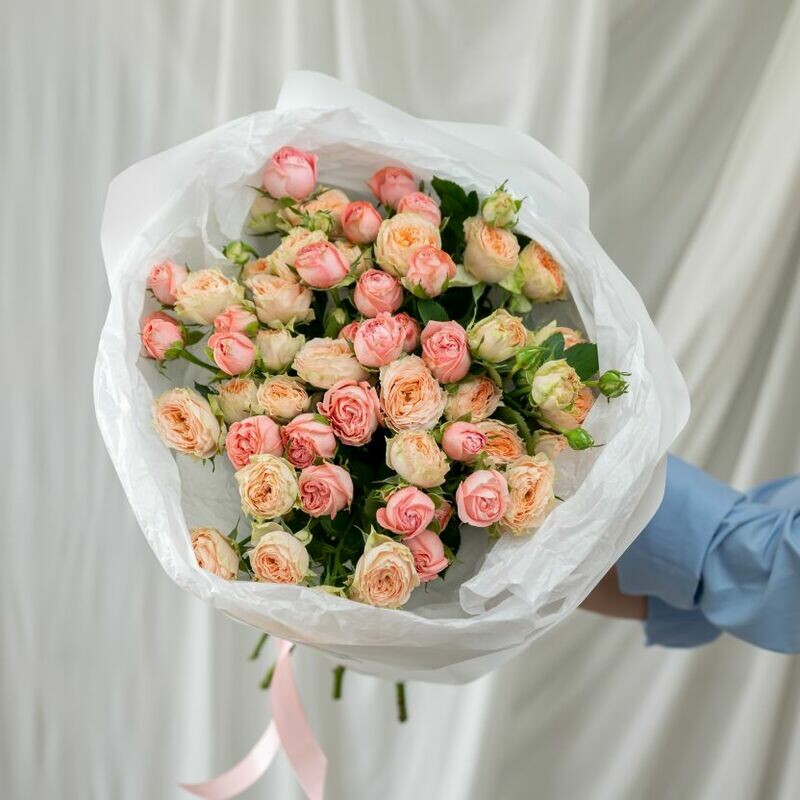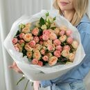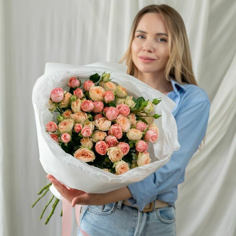 11 кустовых роз (сорт Кения) 50 см в дизайнерской упаковке.