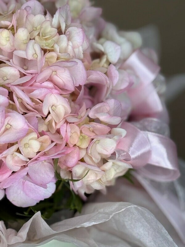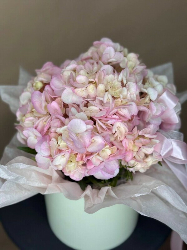 - Розовая гортензия в шляпной коробочке