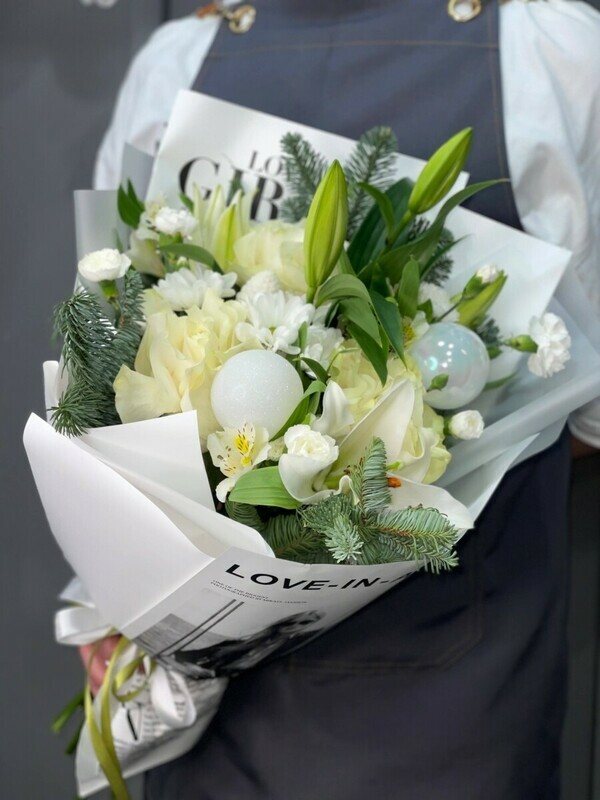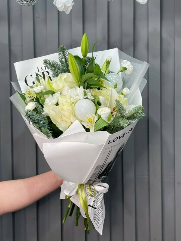 букет новогодний белый как снег ,для теплых моментов в эти праздничные дни.
