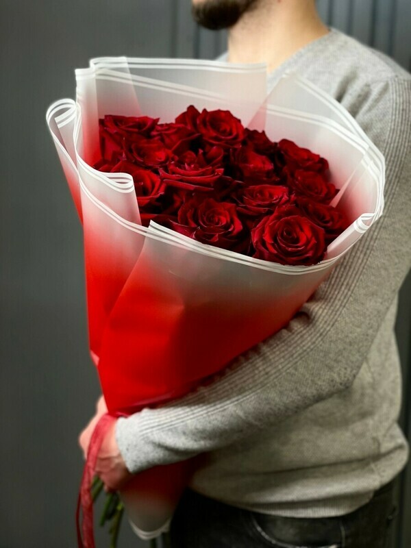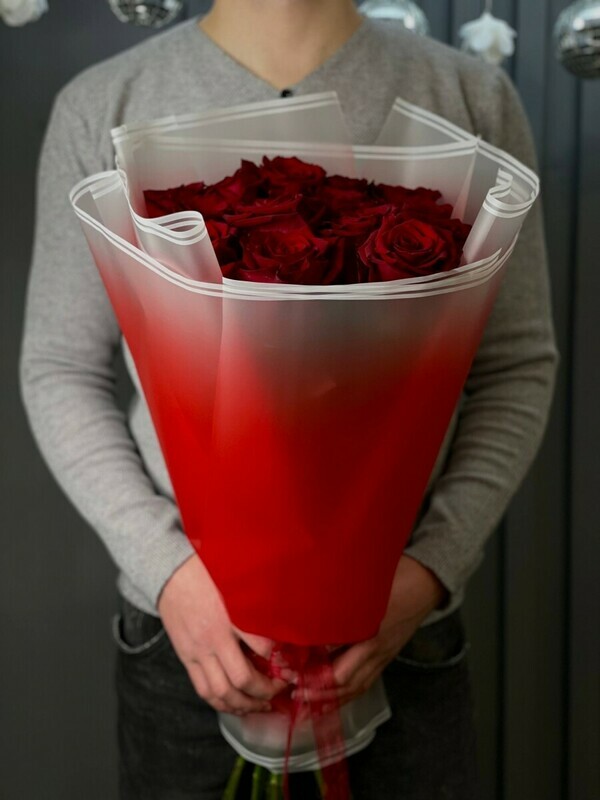 букет из красной эквадорской розы 70см в минималистической упаковке для самый теплых моментов.