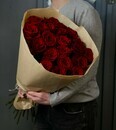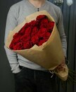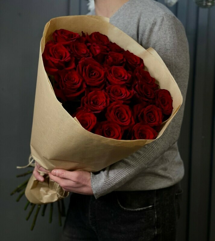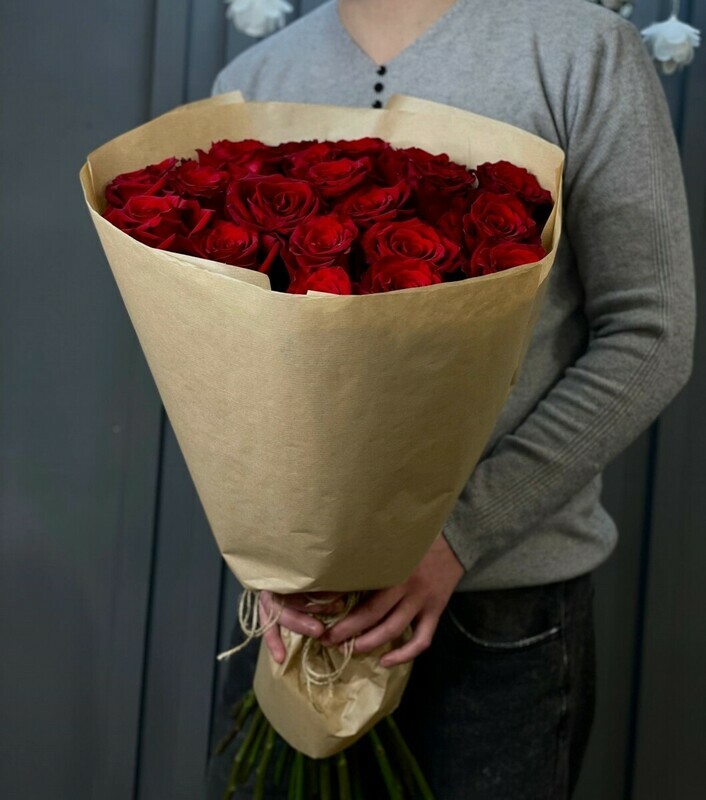 красные эквадорские розы 70см в крафтовой бумаге. Для идеального начала или продолжения вечера .