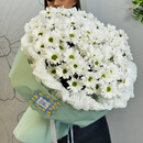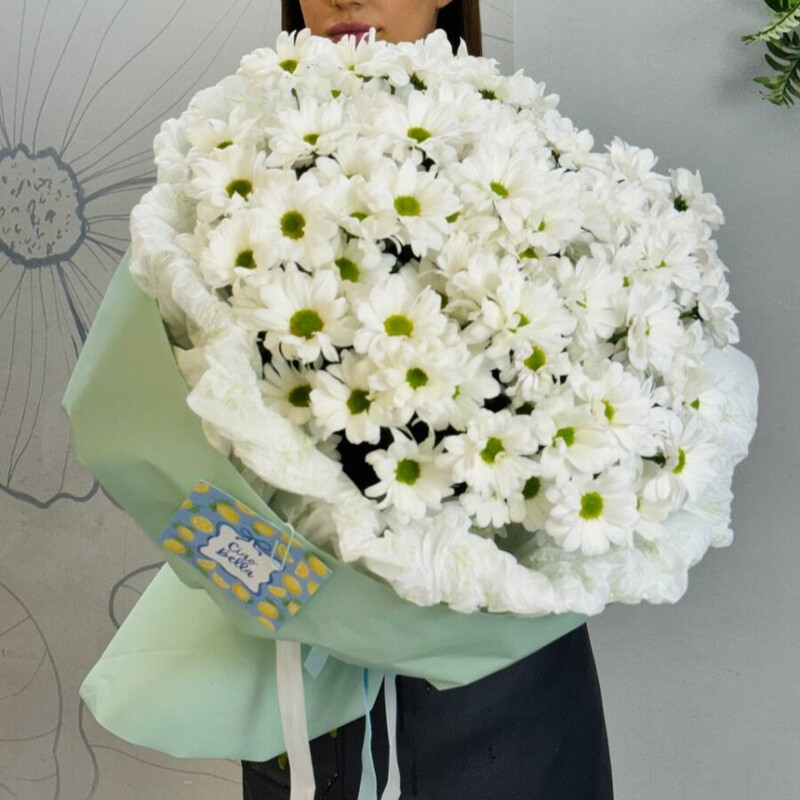 Этот букет очаровывает нежной россыпью белоснежных соцветий: пышные шарики ромашковых хризантем похожи на маленькие солнца, собранные в единое сияющее облако. Их чистая, лаконичная красота дарит ощущение свежести, спокойствия и безмятежности. Преимущества нашей доставки: Аквабокс для свежести – цветы доставляются «на воде», чтобы дольше оставались свежими. После получения просто переставьте композицию в вазу. Инструкция свежести – дарим инструкцию свежести по уходу и питательную подкормку, чтобы цветы радовали вас как можно дольше. Удобная переноска – доставляем букет в фирменном пакете, который защищает цветы и делает транспортировку комфортной. Заказывайте с уверенностью – ваши цветы приедут свежими и красивыми Состав согласовываем индивидуально, исходя из сезонности и актуальности.