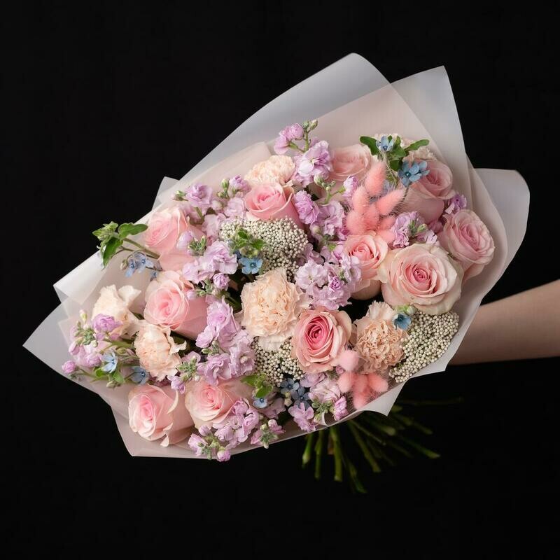 Красивый и нежный, ароматный букет, который будет уместен на день рождения, юбилей, идеален на свадьбу, годовщину, таким букетом можно поздравить коллективом или вручить его как благодарность партнеру по бизнесу в завершении очередного проекта.