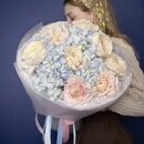 - Премиальный букет с гортензией и ранункулюсами (лютики)