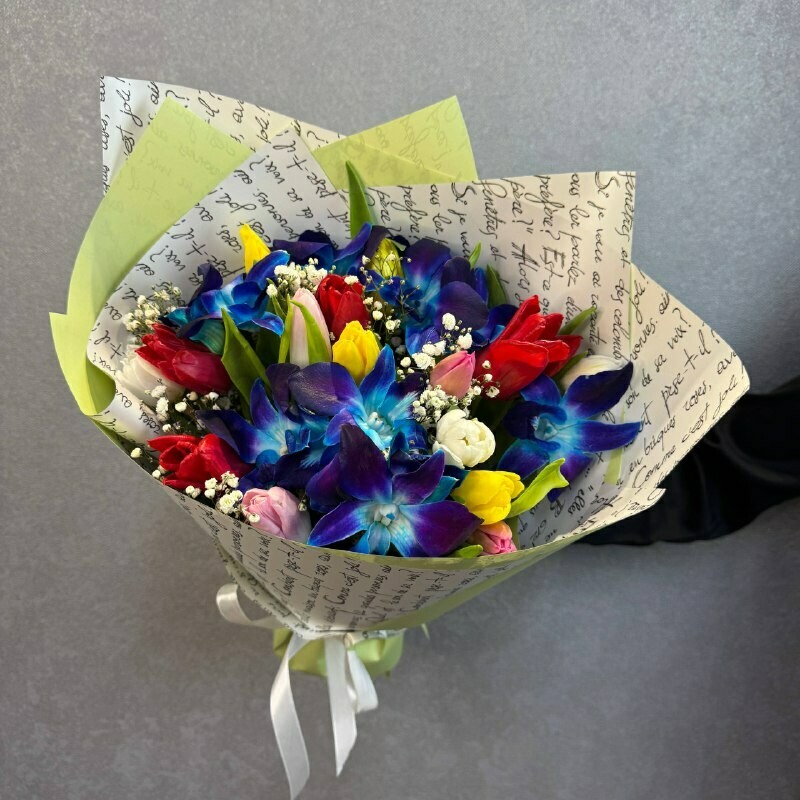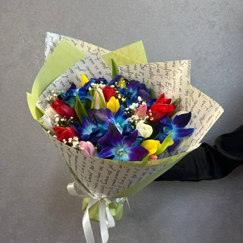 Тюльпаны микс - 15 шт Орхидеи дендробум - 8 шт