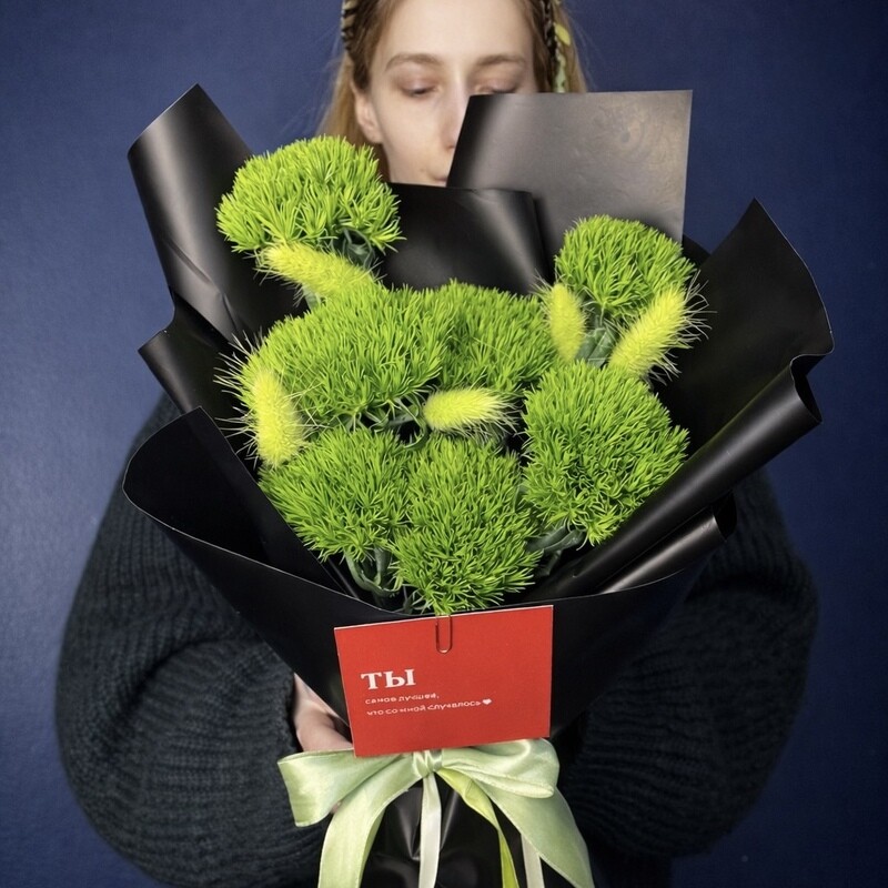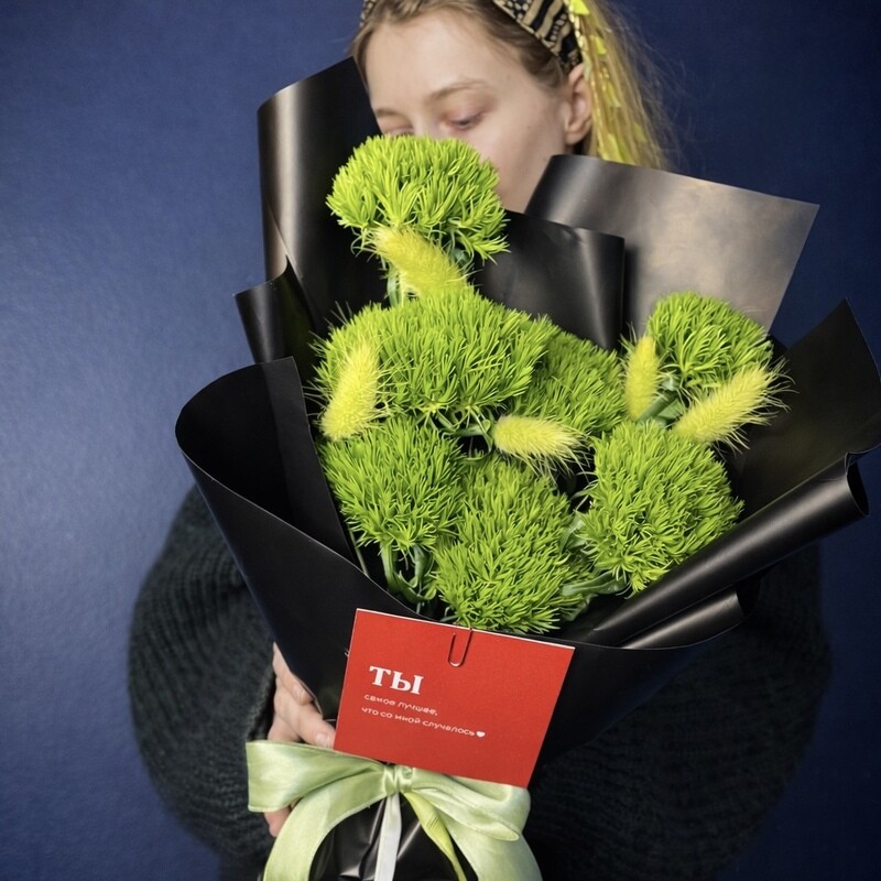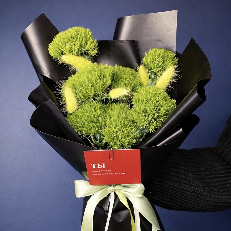 - Пушистый букет в контрастной упаковке