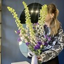 - Интерьерный букет с дельфиниумом и эустомой