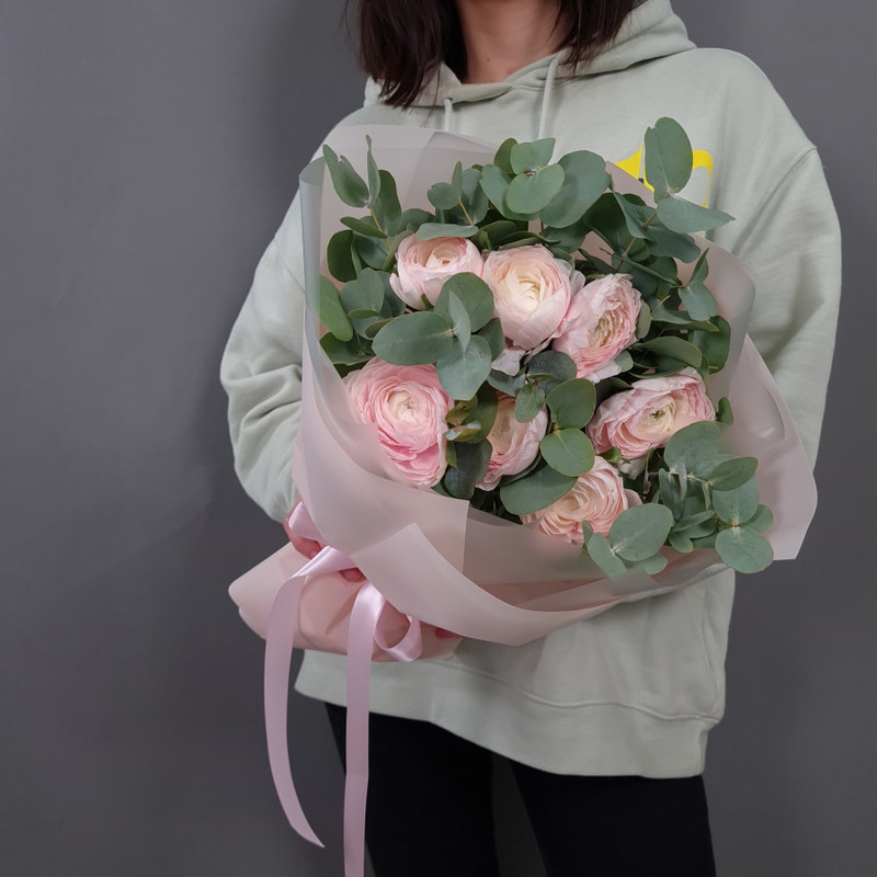 Нежные ранункулюсы с эвкалиптом