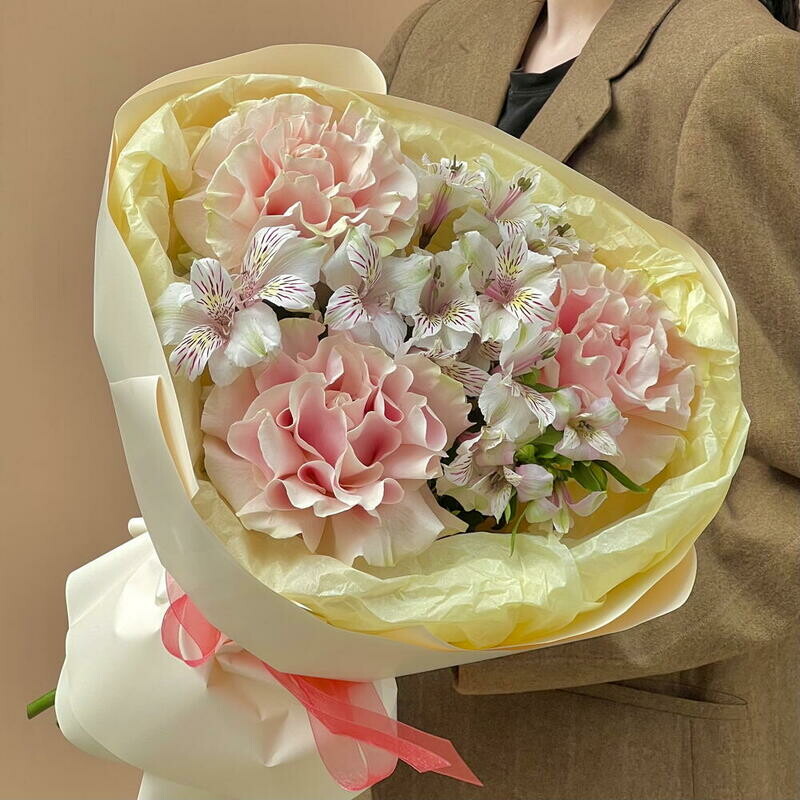 - Букет с французскими розами и альстромерией