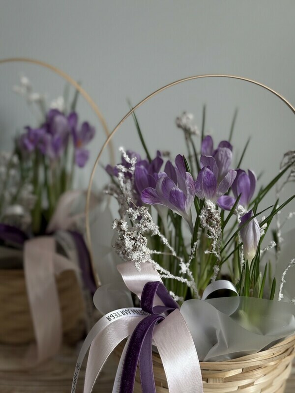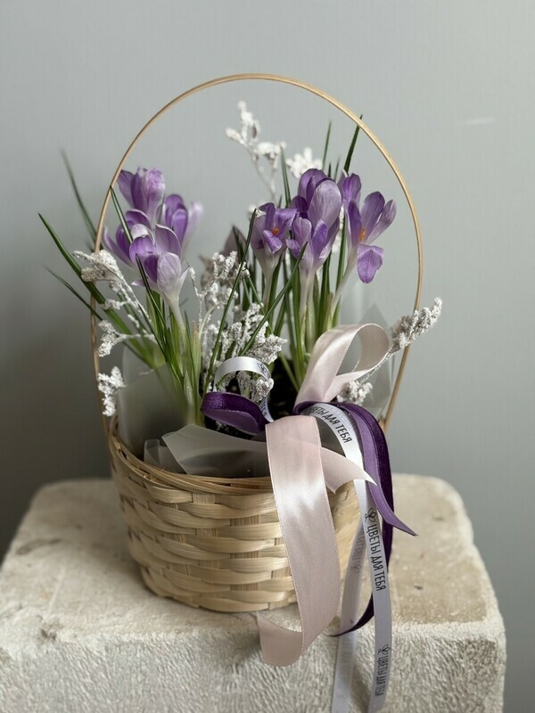 - «Корзинка подснежников» (крокусы и заснеженные ветки)