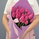 - Монобукет из тюльпанов фуксия (25 штук) в приятной упаковке