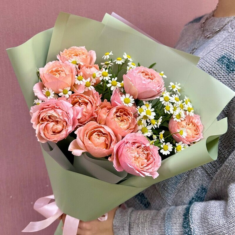 - Кустовая роза Джульетта с ромашками