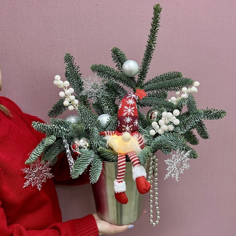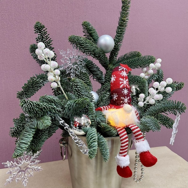 - Новогодняя композиция из нобилиса в ведерке для шампанского