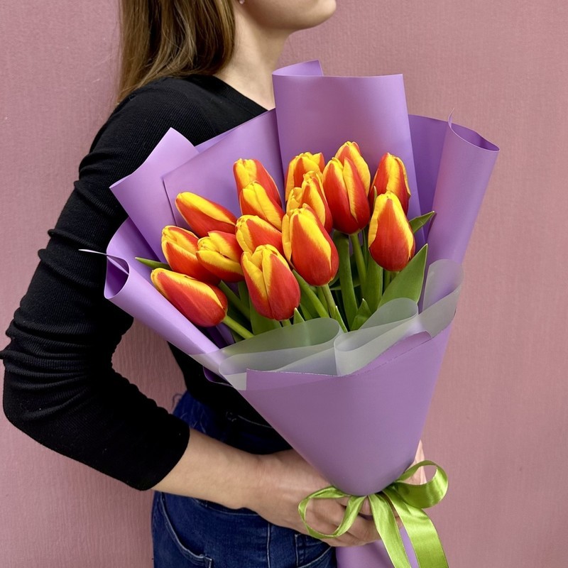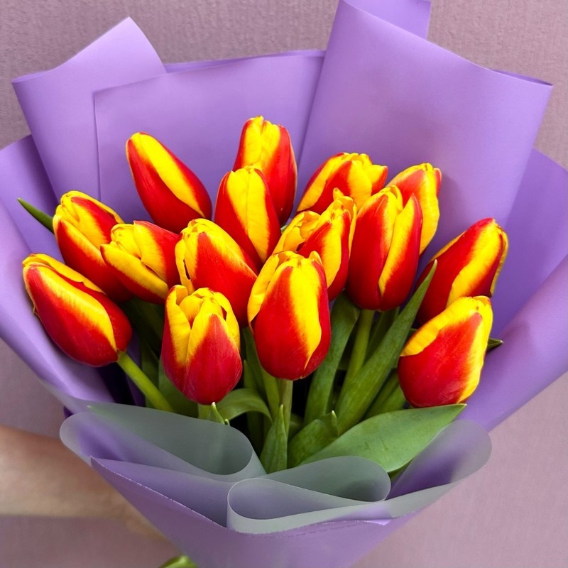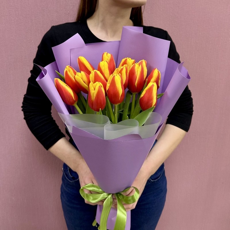 - 15 крупных огненно-красных тюльпанов