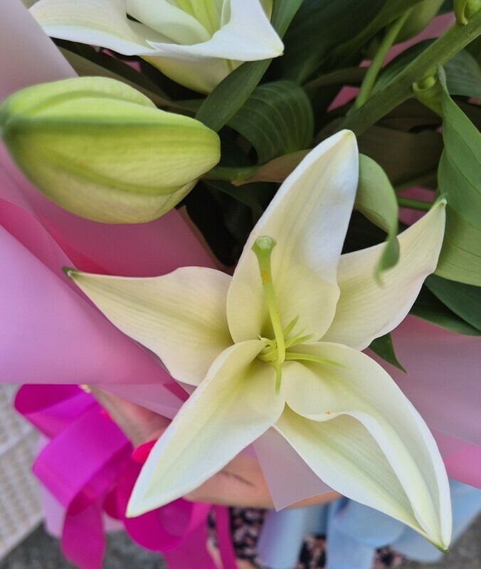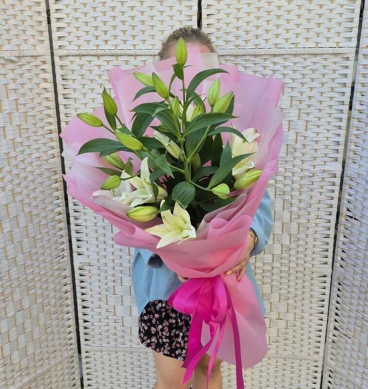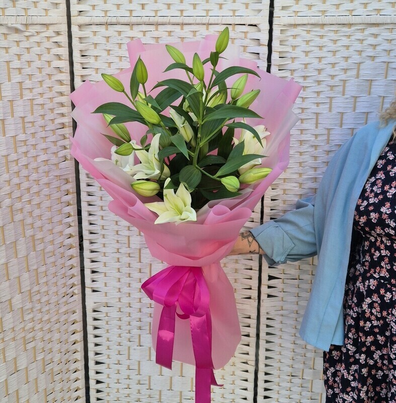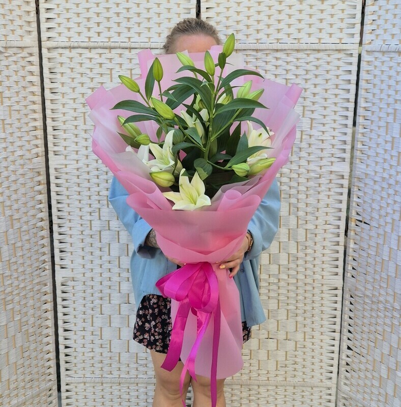 Букет из лилий — это благородство и изящество в каждом бутоне. Их крупные цветки наполняют пространство тонким ароматом и создают атмосферу торжества.
