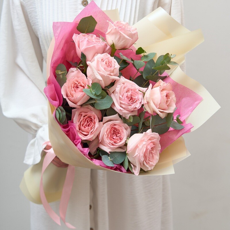 9 Роз 80 см Пионовидные Розовые