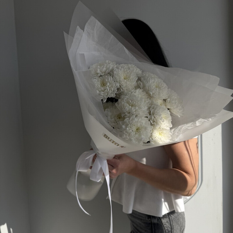- Монобукет белоснежных хризантем
