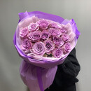 15 фиолетовых роз с оформлением