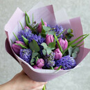 Стильный, ароматный букет из гиацинтов и тюльпанов - отличный подарок себе или близким. День Рождения, именины, годовщина свадьбы, рождение ребенка, 8 марта, День Святого Валентина, выпускной и т.д. Можно вручить маме, сестре, подруге, коллеге, учителю, любимой. Цветы обладают удивительным свойством, они могут нести в себе больше информации, чем слова. слова имеют меньшую силу, и не всегда способны передать необходимые эмоции и чувства. поэтому, иногда лучше не искать подходящие слова, а довериться цветам. приобрести красивый букет, обладающий особой магией общения, и преподнести его дорогому человеку, ведь поступки всегда будут цениться больше, чем слова.