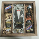 Отличный, стильный набор для настоящего мужчины. Чай, орехи, сироп, горчица, конфеты, шоколад.