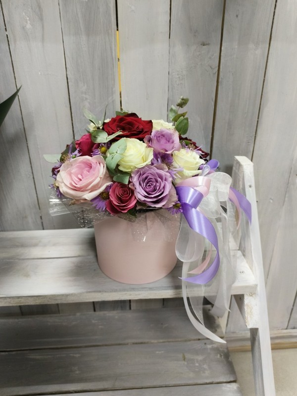 Яркий букет в шляпной коробке поднимет настроение и оставит хорошее воспоминание