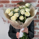 - 15 белых роз с эвкалиптом
