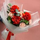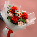 «Страсть» авторский букет из французских роз и гвоздик, стандартный