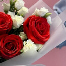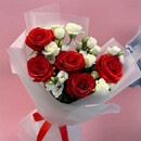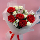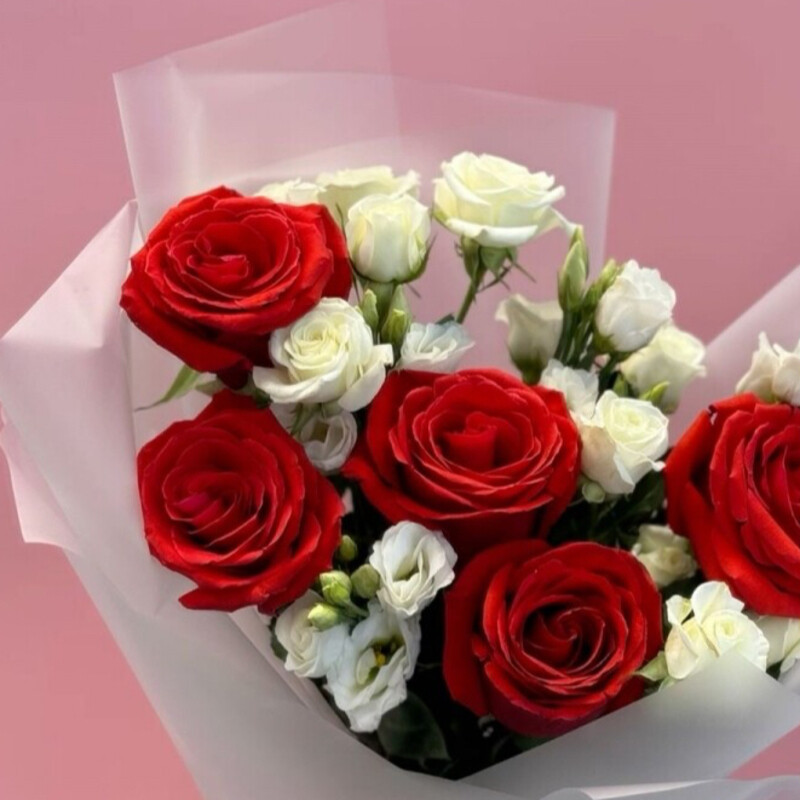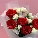 Авторский букет — изысканная композиция из кустовой розы, белой эустомы и розы 50 см. Эта гармоничная аранжировка подойдёт для выражения чувств и станет прекрасным подарком для близких, коллег и друзей по любому случаю.