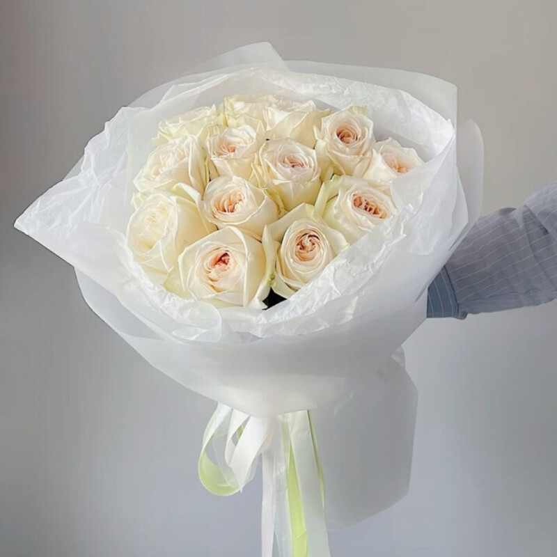 Ароматная Вайт Охара 13 роз — изысканный букет из одной роскошной эквадорской розы в элегантной упаковке. Идеален для выражения чувств, подходит для любых случаев и адресатов.