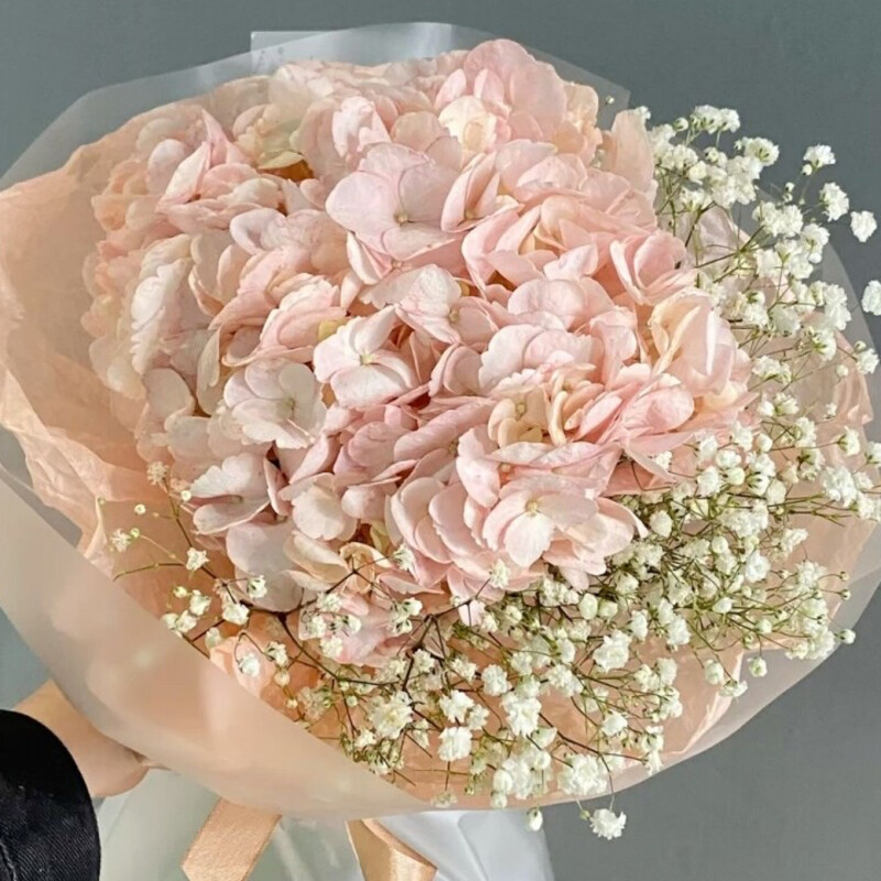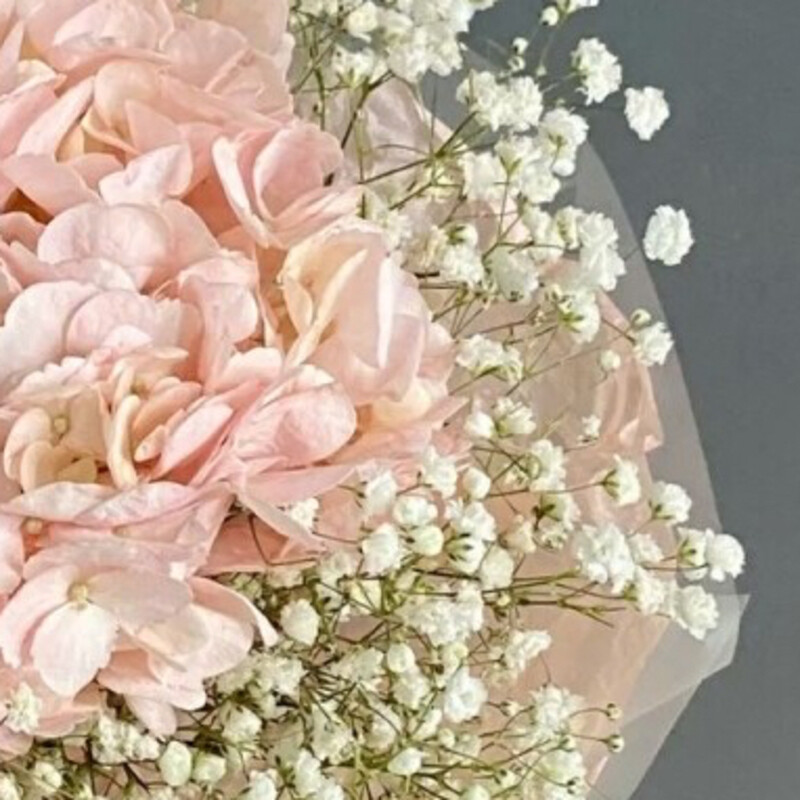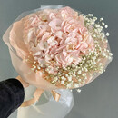 Букет гортензии и гипсофилы — гармоничное сочетание пышных соцветий и изящных мелких цветов. Подходит для выражения любых чувств и эмоций, идеален для подарков близким и друзьям по любому поводу.