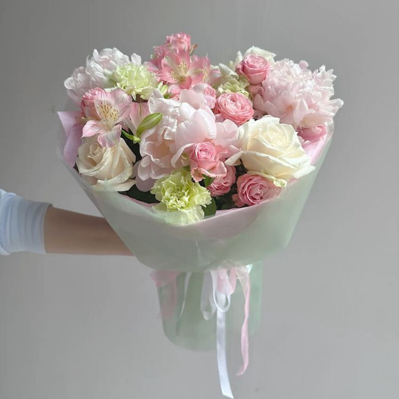 Букет «Нежнейший пион» авторский — изысканная композиция из пионов, гвоздики, розы, альстромерии и кустовой розы. Элегантная упаковка придаёт букету завершённость. Подходит для любых случаев и порадует каждого любителя цветов.