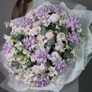 Букет «Сиреневые сны» авторский — это изысканная композиция из розы, кустовой хризантемы, альстромерии и маттиолы, дополненная эвкалиптом. Оформлен в стильной упаковке. Подходит для любых случаев и идеален в качестве подарка для близких и коллег.