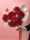 - Букет 7 французских красных роз с эвкалиптом
