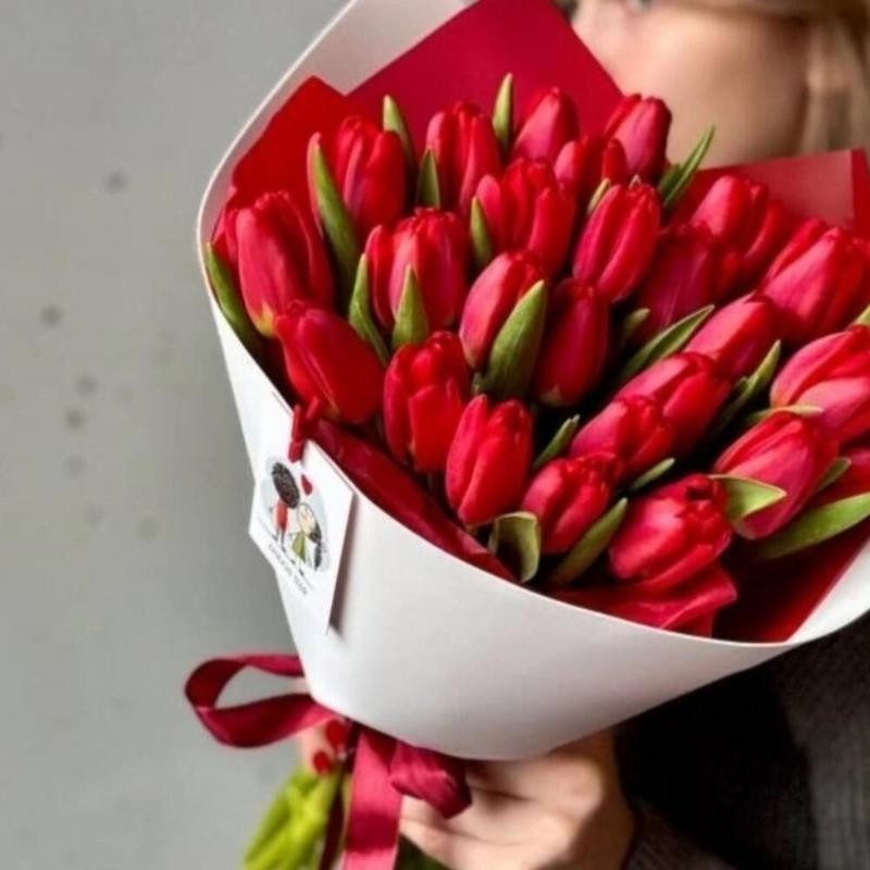- Букет из 25 красных тюльпанов Тюльпаны