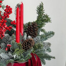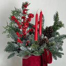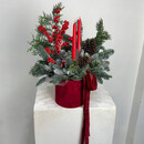 Хвойная композиция в красной бархатной коробке со свечами, стандартный