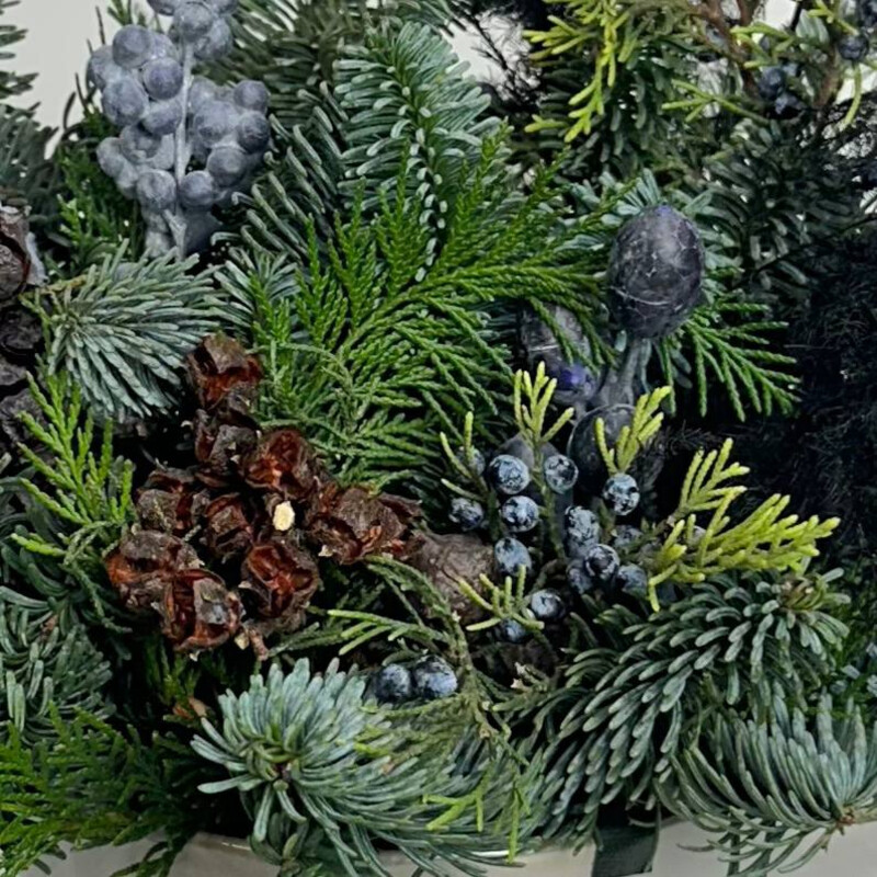 Новогодняя композиция в изысканной керамической пиале — воплощение утончённого вкуса и праздничной гармонии. Свежая хвоя нобилиса и туи не осыпается и не желтеет, наполняя пространство стойким ароматом зимнего леса. Легкий вуалью спускается мягкий аспарагус плюмозус, придавая композиции воздушность и благородный объем. Каждый элемент тщательно подобран и расположен с ювелирной точностью, чтобы создать идеальный баланс природной красоты и художественного замысла. Это не просто декор — это новогодний акцент, рожденный для тех, кто выбирает индивидуальность, стиль и совершенную эстетику.
