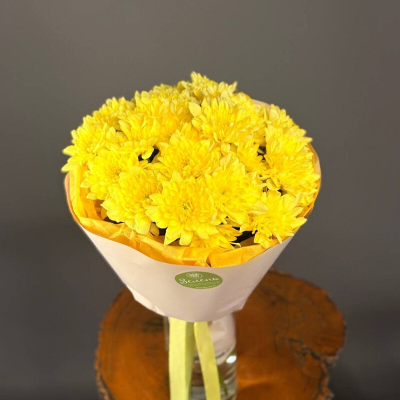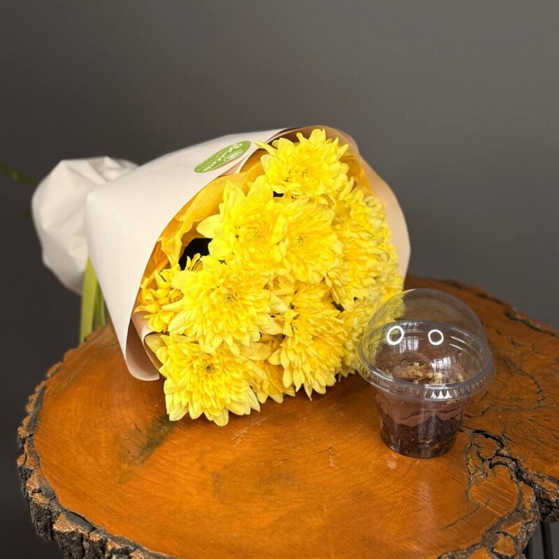 - Набор букет из желтых кустовых хризантем 3шт + трайфл на ваш выбор