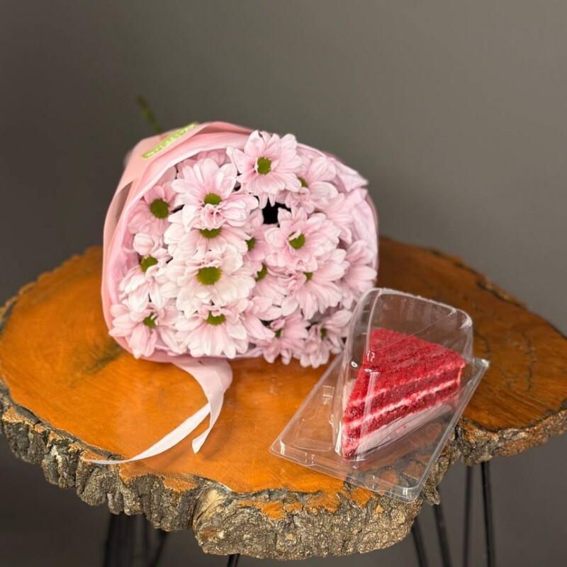 - Набор букет из ромашковых хризантем + торт на ваш выбор