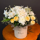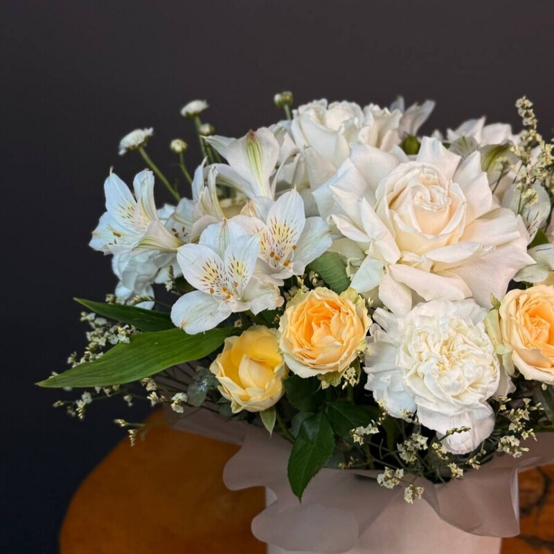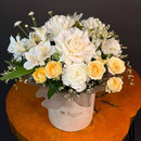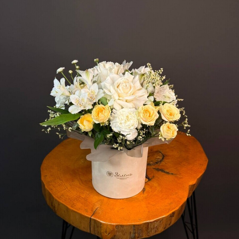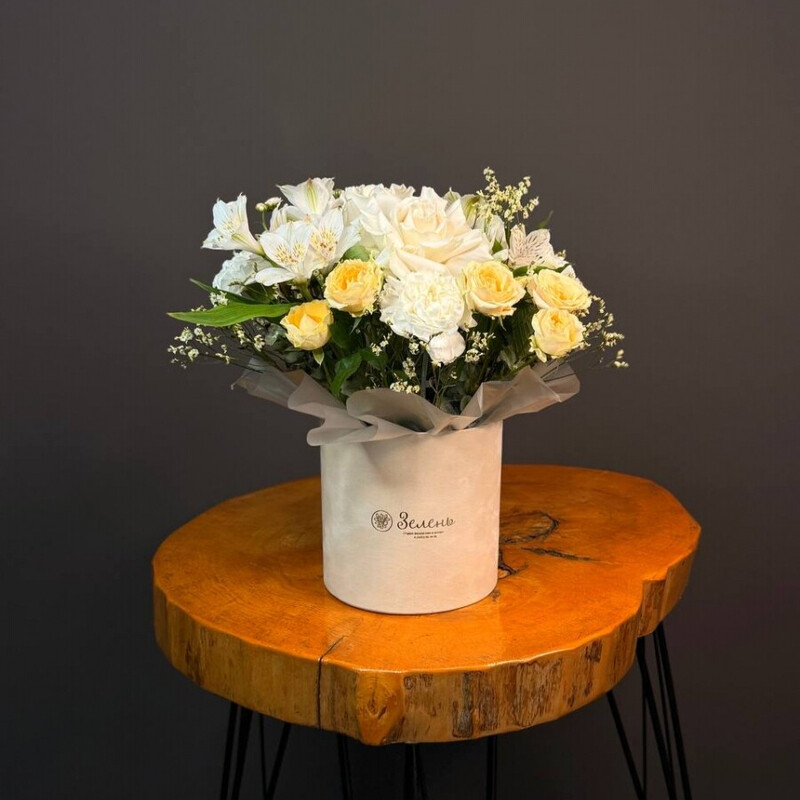 - Цветочная композиция в шляпной коробке для учителя