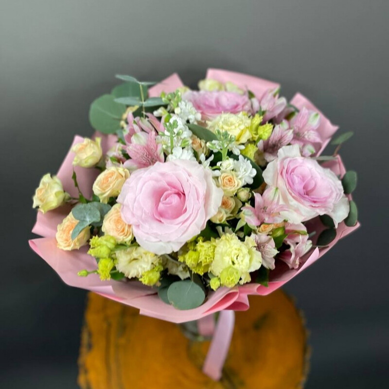 - Сборный букет розовый в корейской упаковке