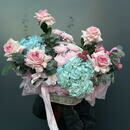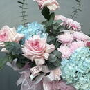 Композиция в небесно-розовых оттенках с пионовидными розами,размер M