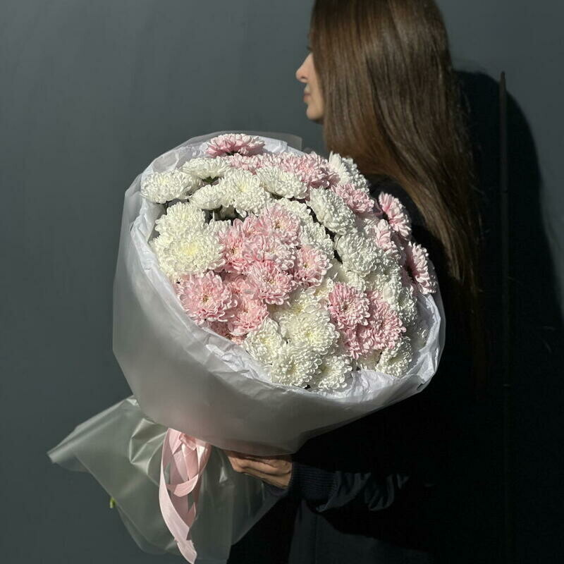 Монобукет из розовых кустовых хризантем — это нежная и одновременно яркая композиция, которая дарит ощущение уюта и тепла. Кустовые хризантемы отличаются обилием бутонов на каждом стебле, поэтому букет выглядит объемным и пышным даже без дополнительных цветов. Розовый оттенок символизирует заботу, внимание и искренние чувства, поэтому такой букет станет отличным подарком для выражения благодарности, дружеской симпатии или романтического настроения.