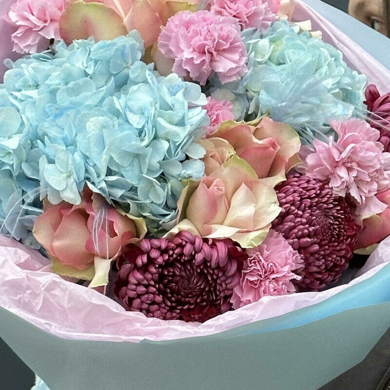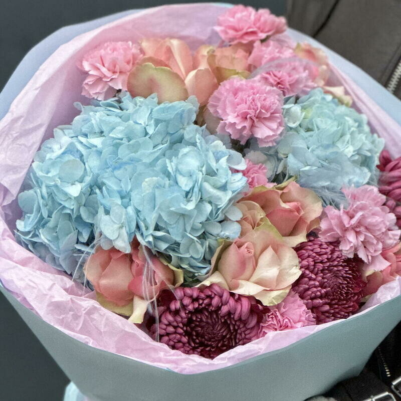 Букет в небесно-розовых оттенках,размер М, стандартный
