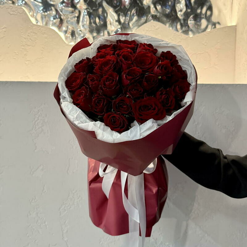 Букет из 25 красных кенийских роз, букет из 25 красных кенийских роз