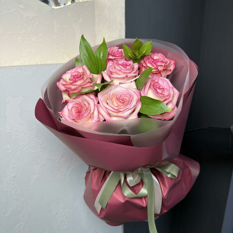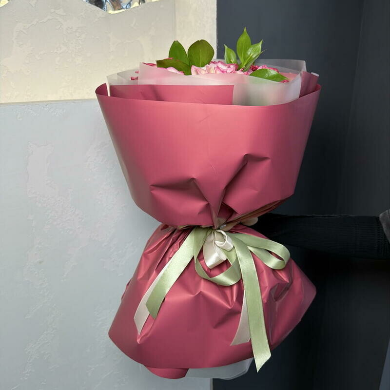 Нежный букет из розово-дымчатых роз в стильной бардовой упаковке с сатиновой лентой — идеальное признание в чувствах. Закажите сейчас и подарите искренние эмоции.