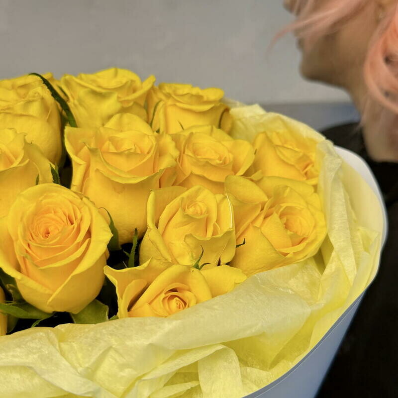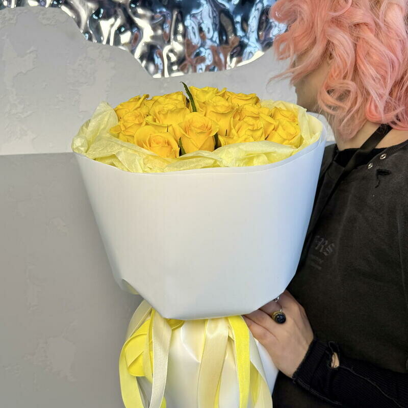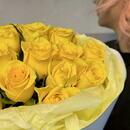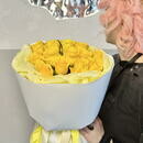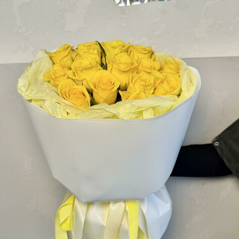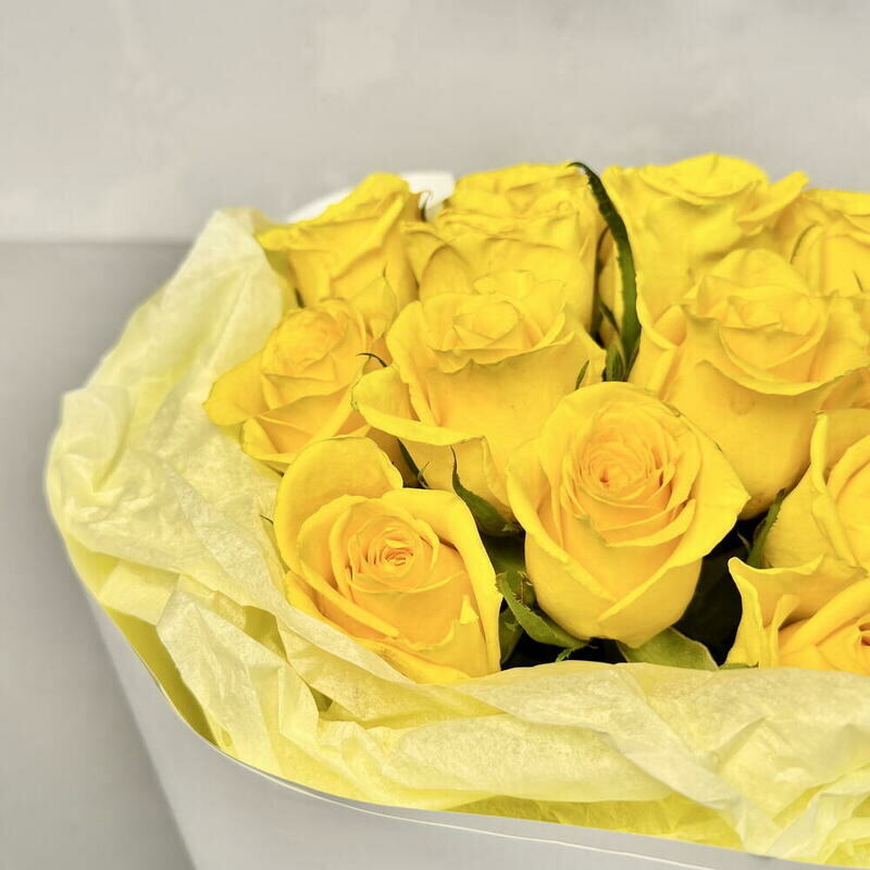 Монобукет из 15 кенийских роз в воздушной упаковке, монобукет желтые розы