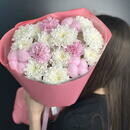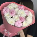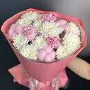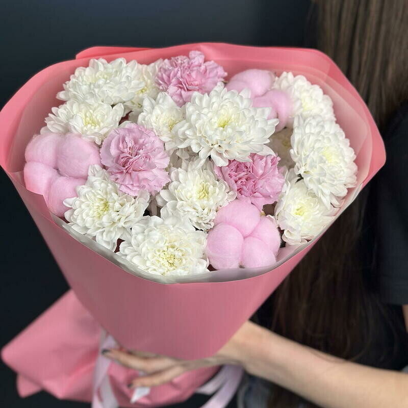 Авторский букет с нежными диантусами, розовым хлопком и хризантемой, стандартный