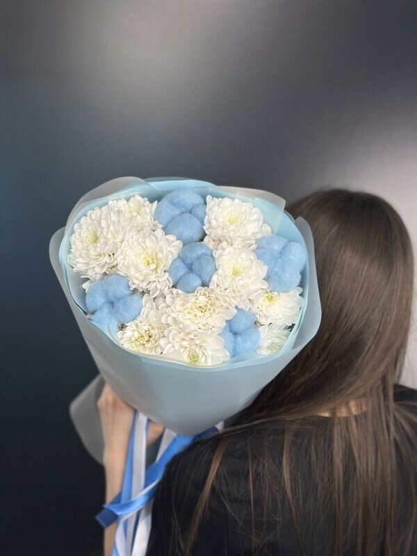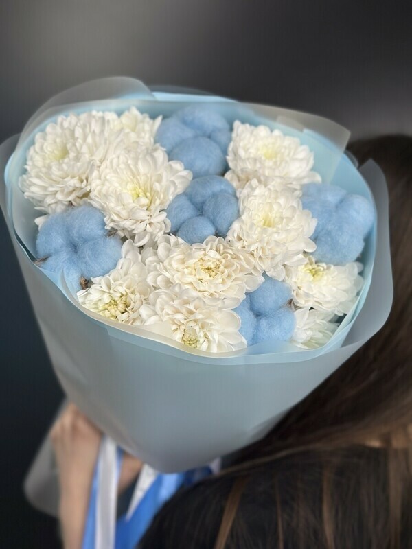 Сборный букет с кустовыми хризантемами и хлопком, стандартный